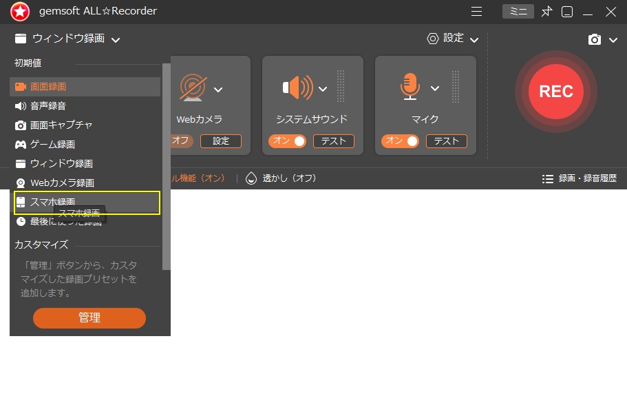 STEP1 録画モードで「スマホ録画」を選ぶ