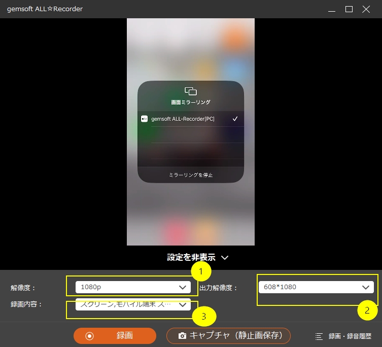 ここでは、ミラーリング録画ソフト「ALL★Recorder」を使ったiPhoneの録画方法をご案内します。
