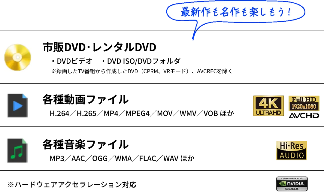 ※WindowsにはDVD再生機能がありません。本ソフトで再生できます。