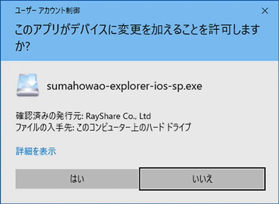 3.次の画面が表示されますので、「はい」をクリックしてください。