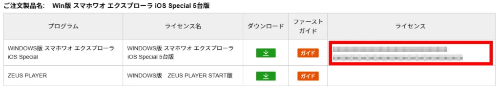 ※メールで、ライセンス情報が2行になっている場合も、必ず一括で、スペースが入らない様にコピーし、入力欄にペーストしてください